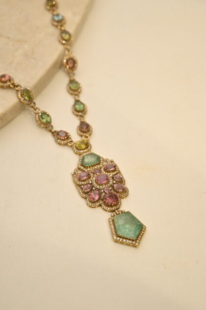 Multi Tourmaline Art Deco Victorian Long Necklace