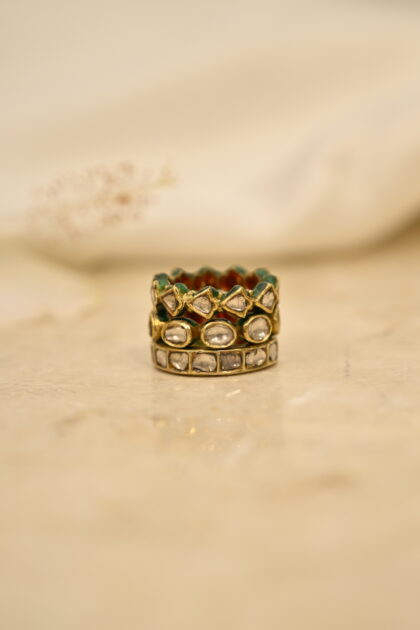 Rose Gold & Gold Squarish Polki Stackable 3 Rings