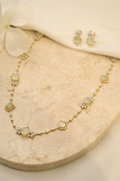 Carved Yellow Sapphire Polki & Diamond Chic Choker with Earrings