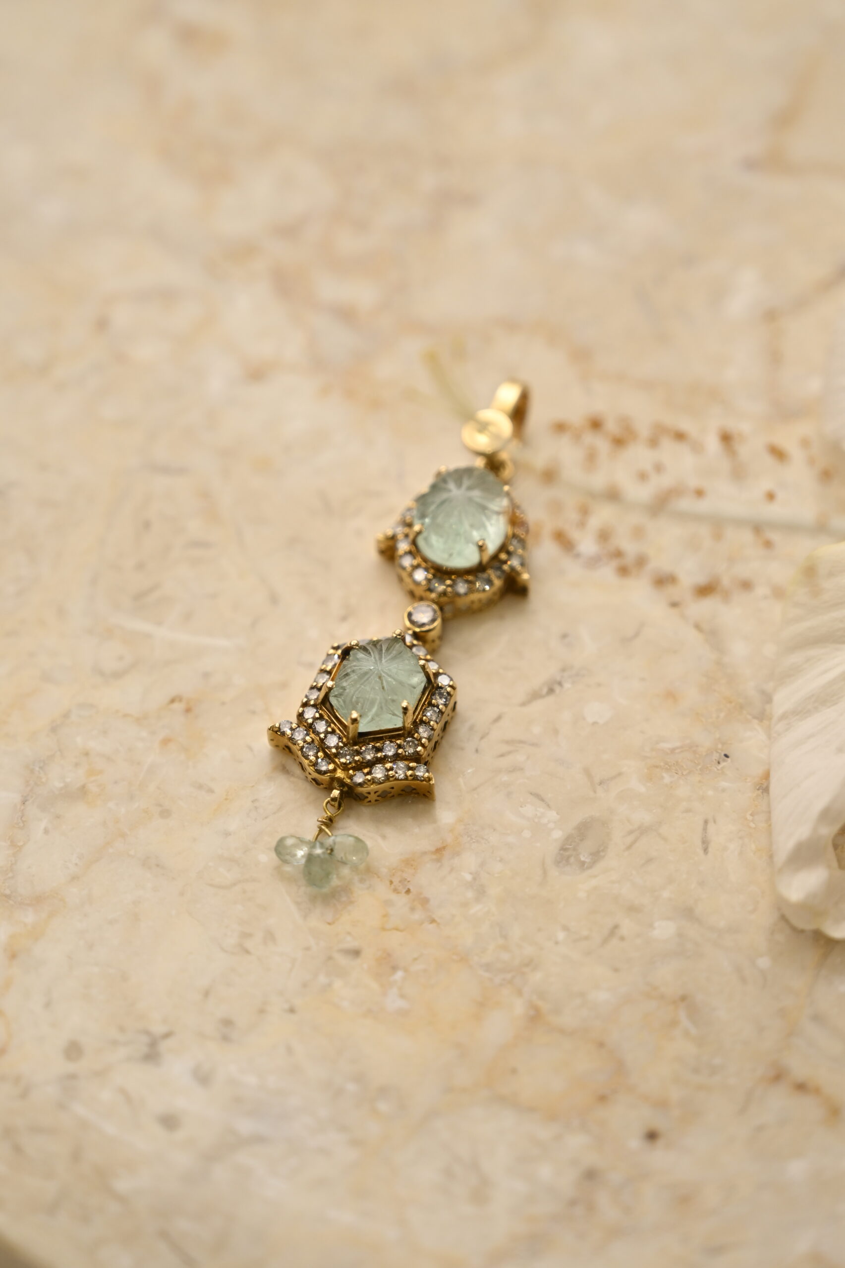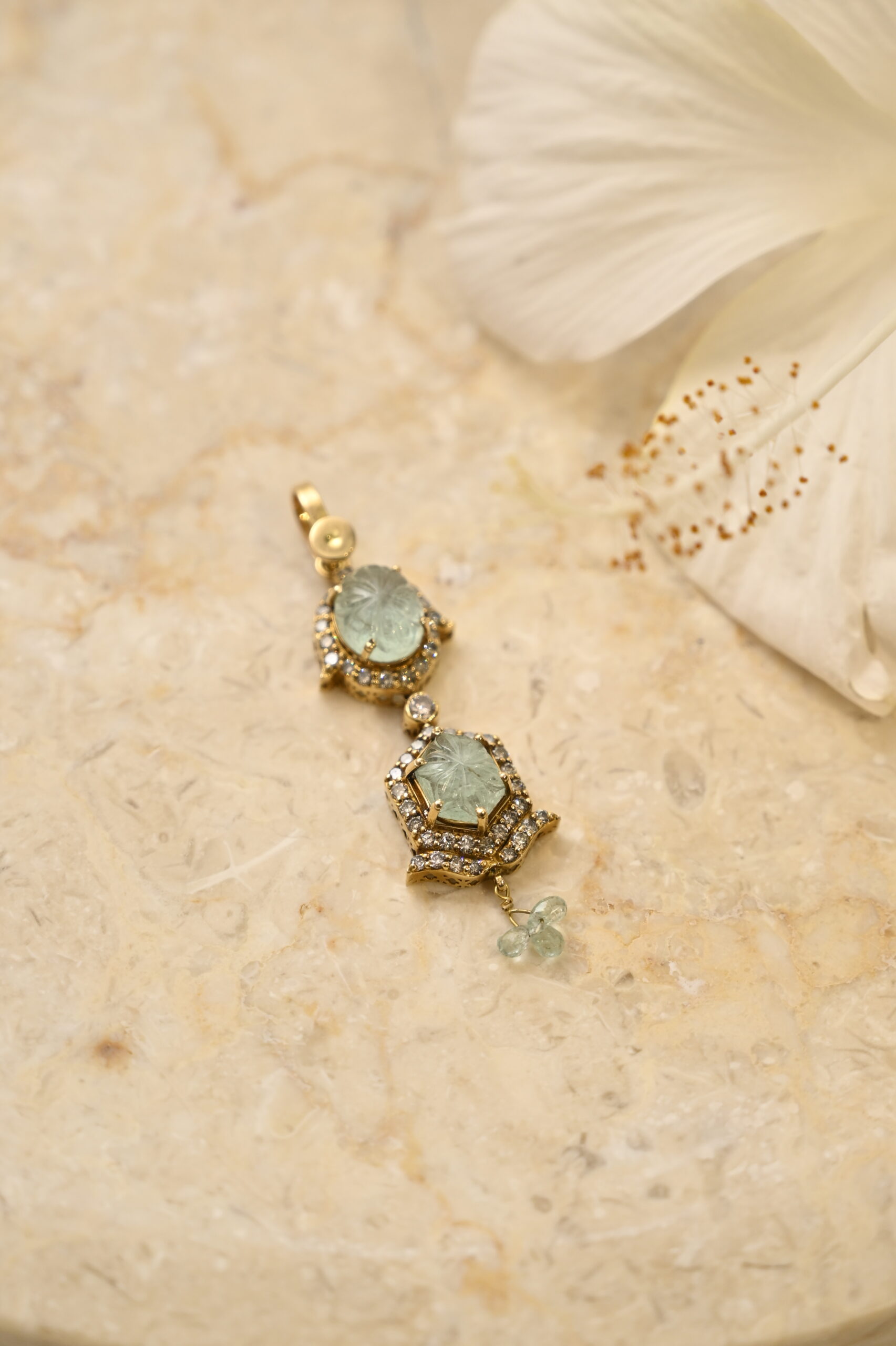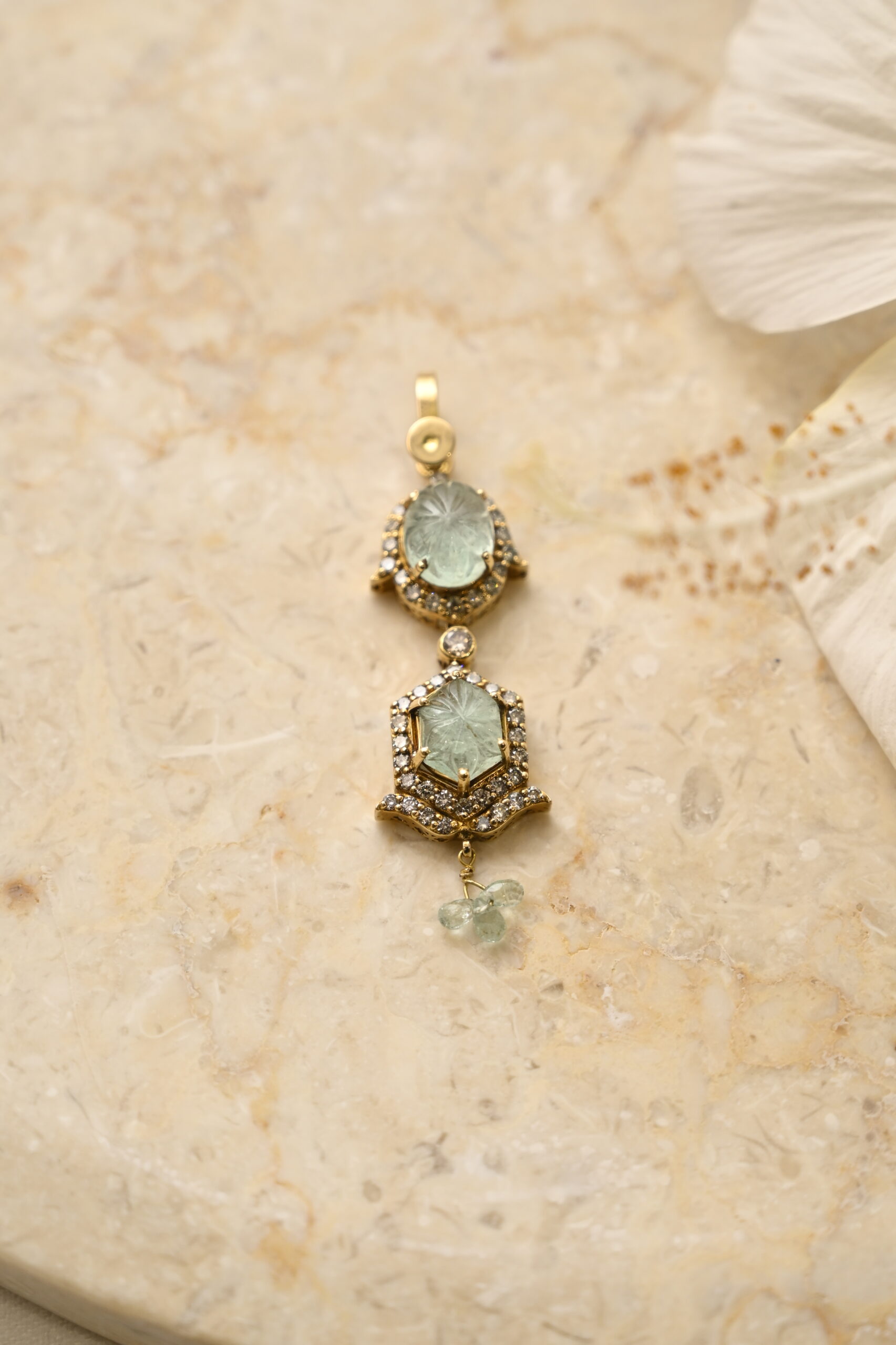 Carved Russian Emerald & Diamond Small Pendant