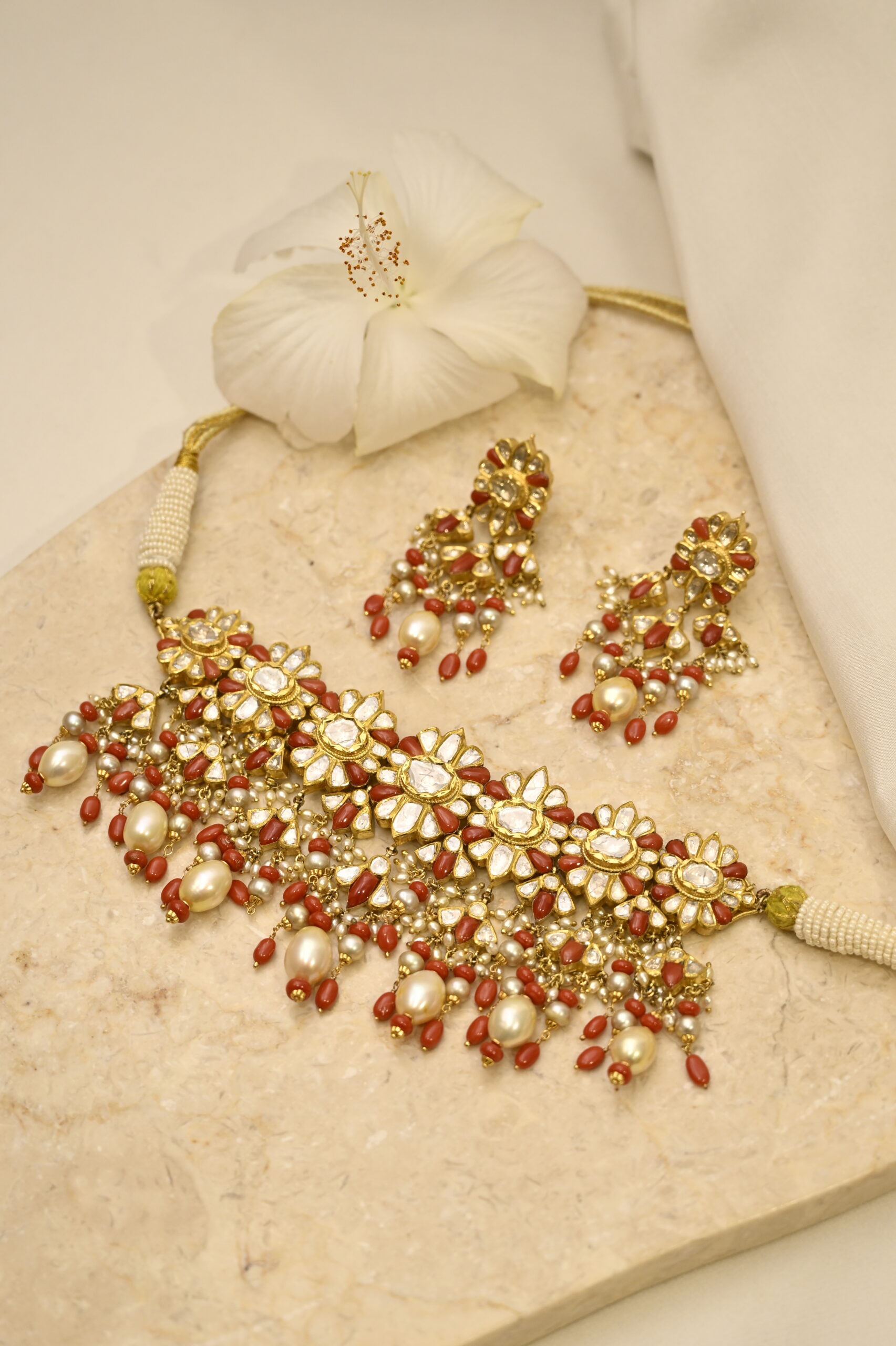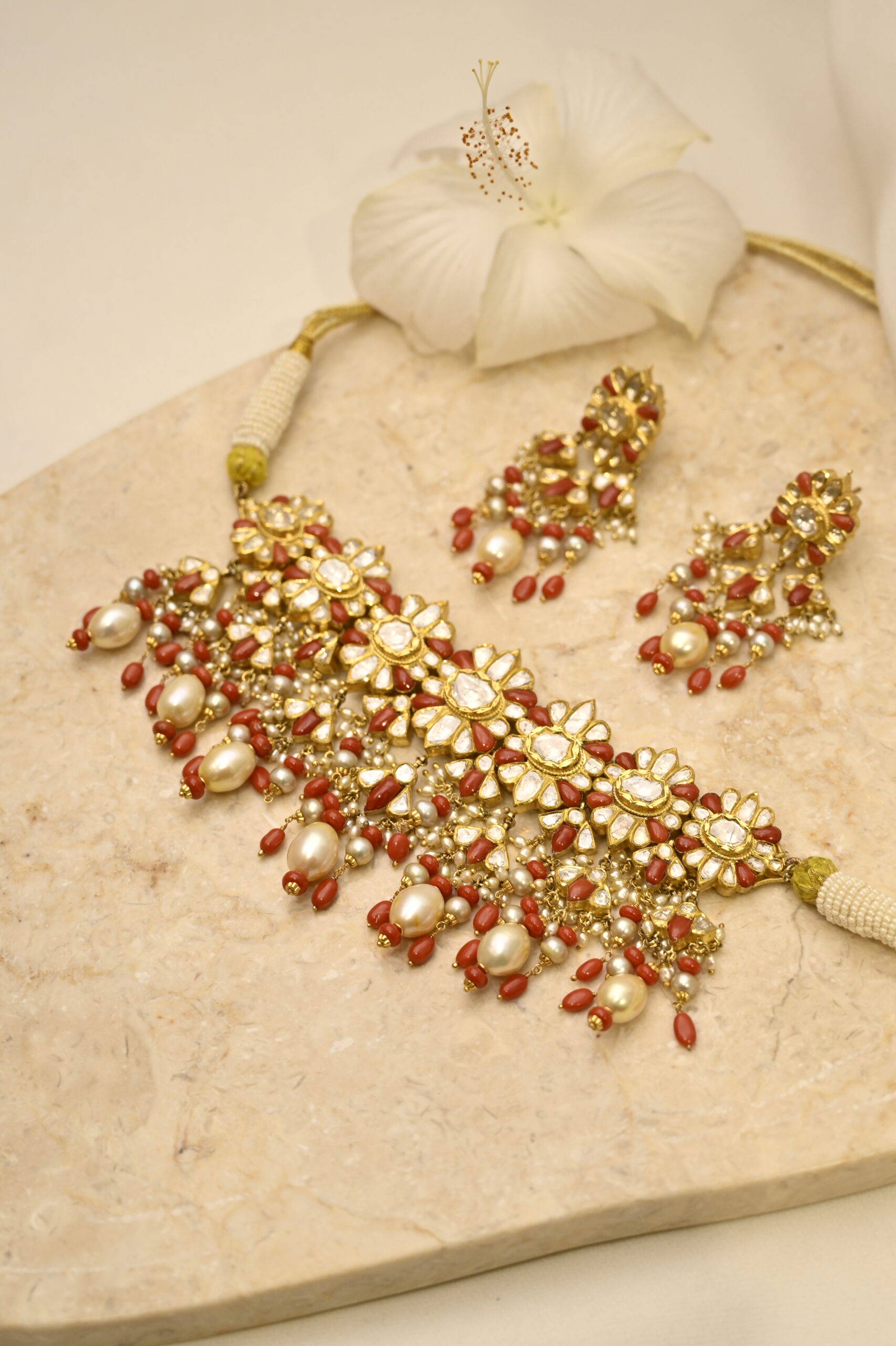 Coral & Polki Jadau Necklace with Earrings