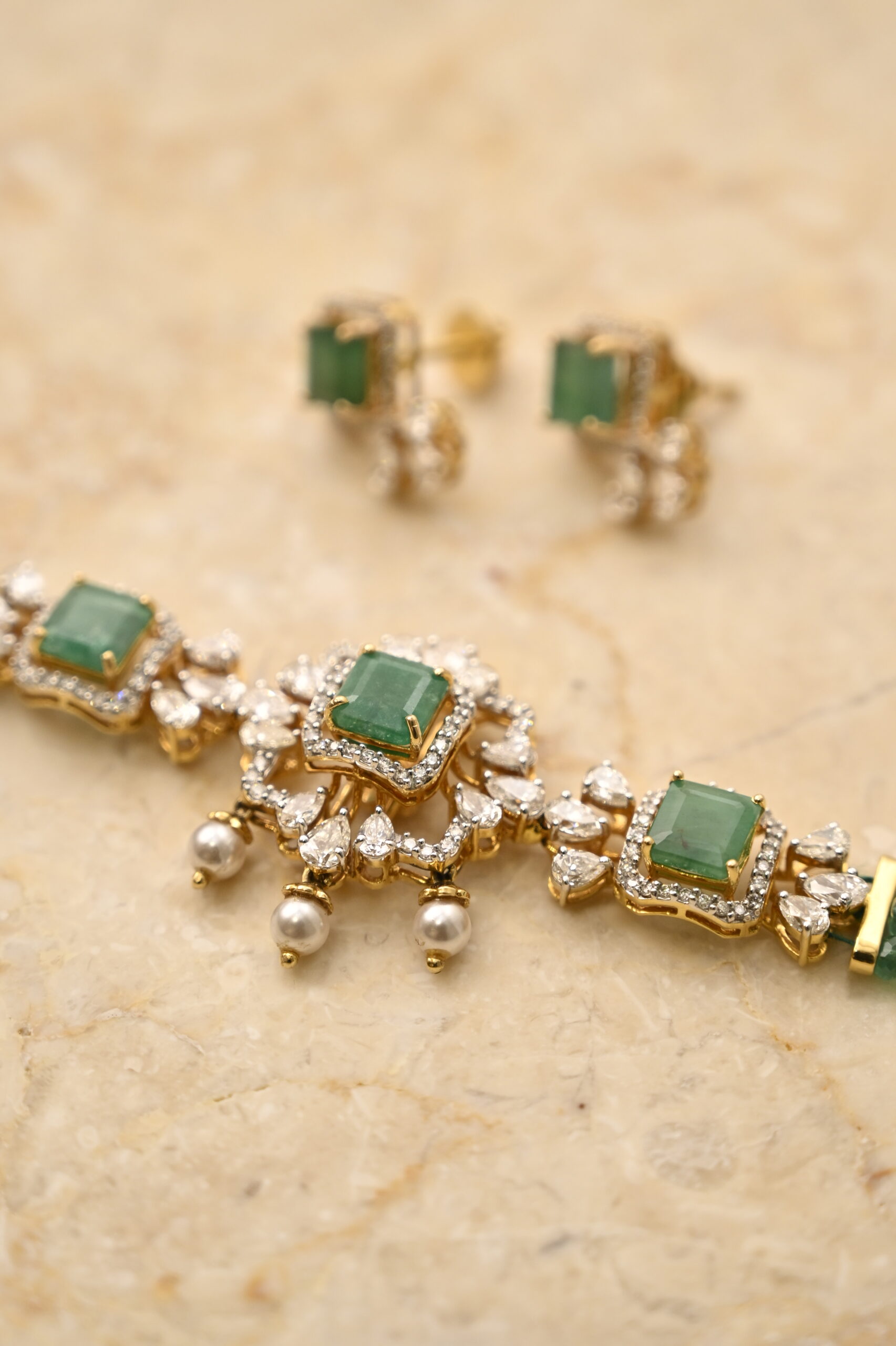 Diamond & Zambian Emerald Small Chic Choker with Earrings