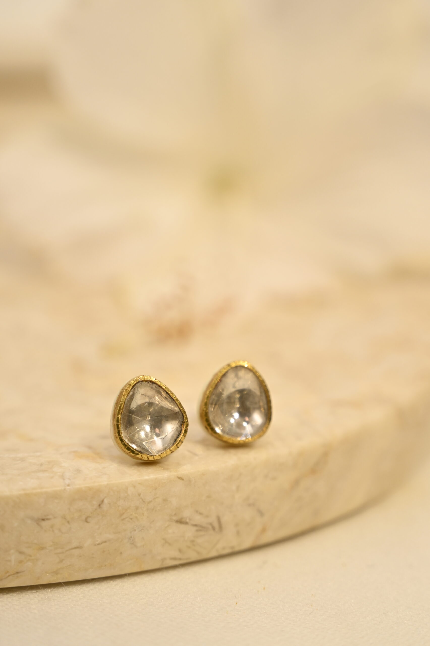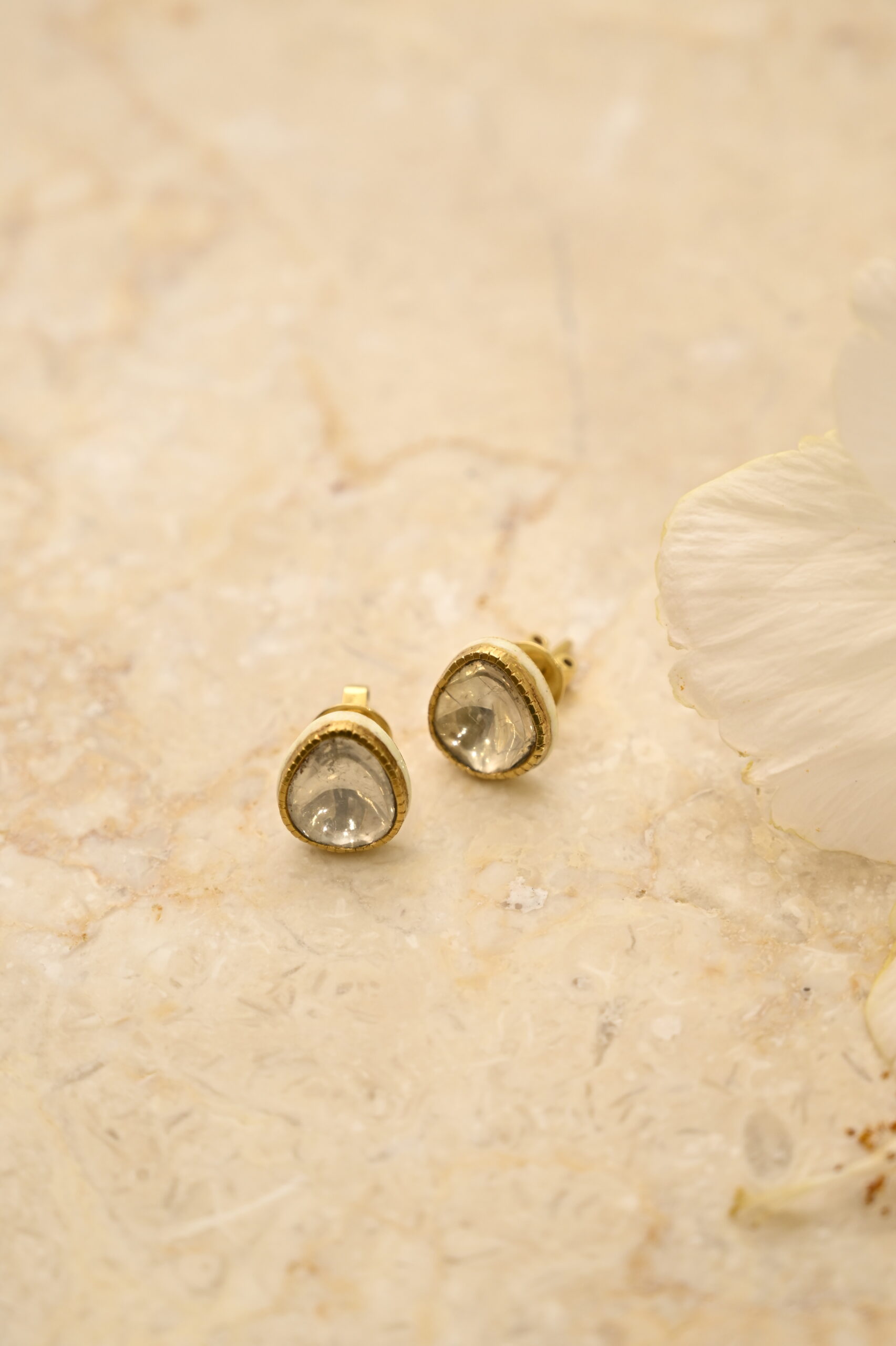 Plain Polki Studs With White Enamel